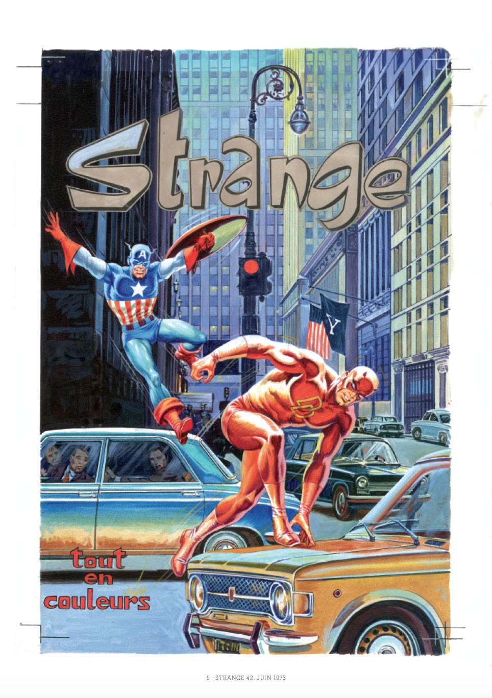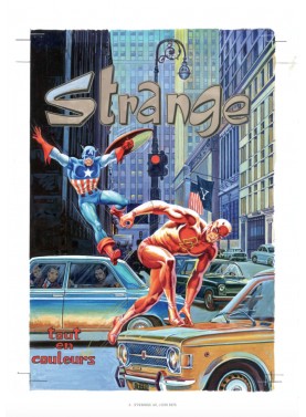 Ce coffret présenté sous forme de portfolio offre 80 reproductions des fabuleuses couvertures du magazine Strange, réalisées à la gouache par Jean Frisano. Il s’accompagne d’un livret de 32 pages sur ce dessinateur d’exception, qui a fait découvrir à la France tout un pan de la pop culture américaine, notamment les superhéros, dans les années 1970-1980.