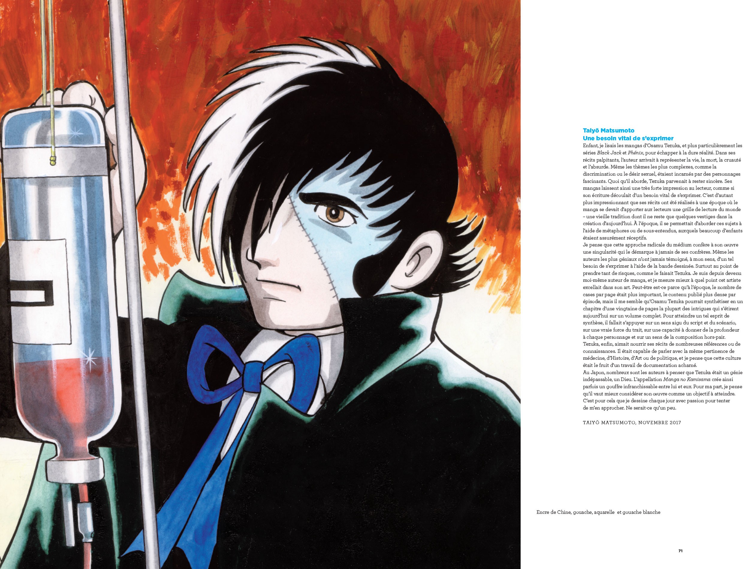 Au point de se voir attribuer de son vivant le titre de « Manga no Kamisama » : « le Dieu du manga ». Pionnier de l’animation au Japon, Tezuka est le créateur d’Astro le petit robot et de dizaines d’autres héros. Il a œuvré dans tous les genres du manga en y exprimant, toujours, des convictions profondément humanistes.